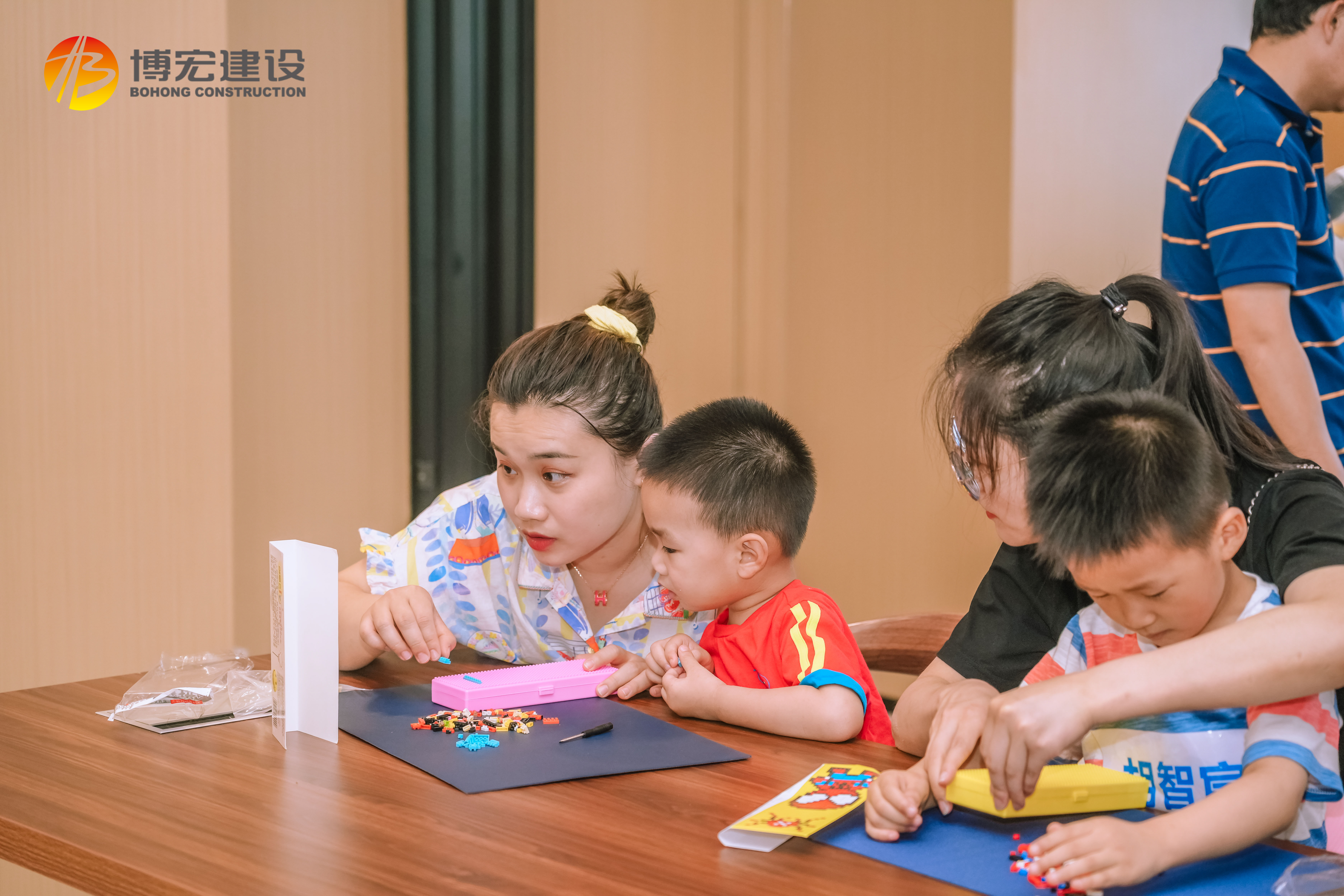 在专业老师带领下,全体成员进行DIY“积木文具盒”。